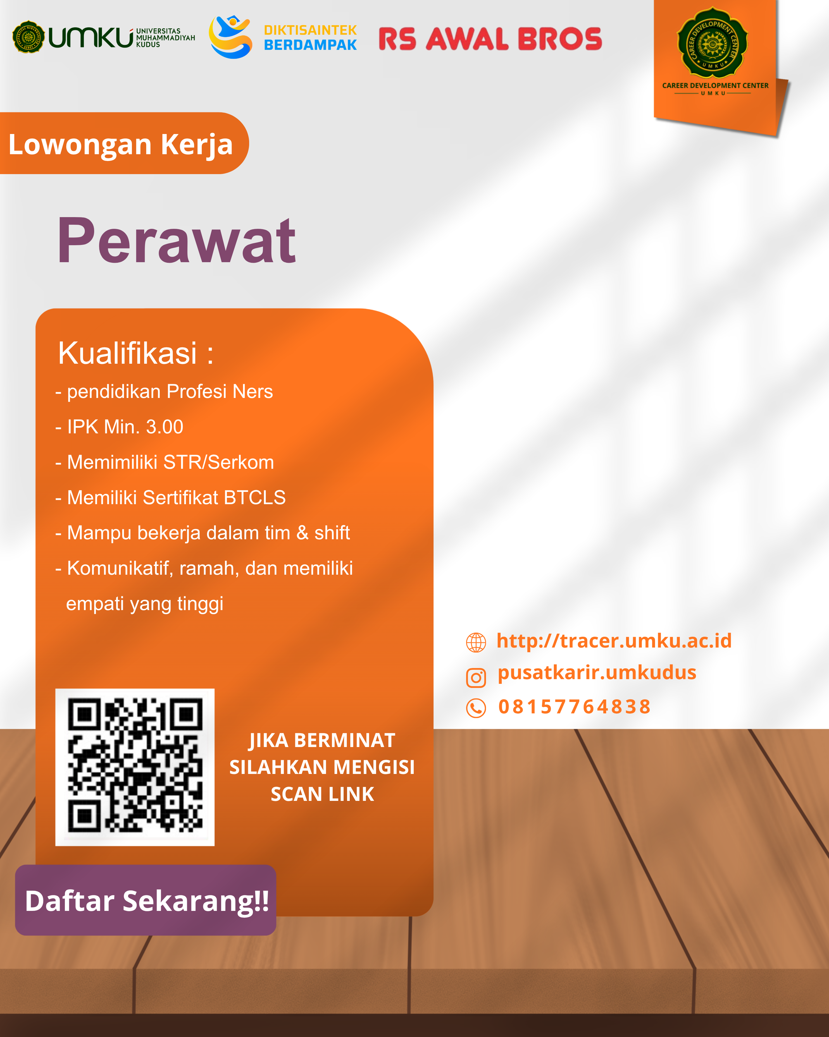 Tracer Study dapat disebut juga dengan surve alumni dapat diartikan juga studi tentang orang yang telah lulus dari perguruan tinggi. Sejalan dengan tujuan pemeringkatan meminta untuk terlibat dalam tracer study yang bisa dilakukan melalui link online. partisipasi Alumni didalam tracer study sangat bermanfaat untuk kami Universitas Muhammadiyah Kudus dan untuk almamater tercinta serta untuk upgrade kurikulum prodi, proses belajar sesuai dengan dunia kerja lebih dari itu, data keberadaan alumni akan menjadi rekam jejak kami, suatu saat kami bisa saling bersinergi untuk memuwujudkan universitas kita semakin lebih maju dan suskes, saya berharap kontribusi anda dibalas oleh Allah SWT, dan semoga lebih sukses dan tentu UMKU menuju universitas yg unggul berkelas university, sesuai dengan visi misi kami terimakasih.