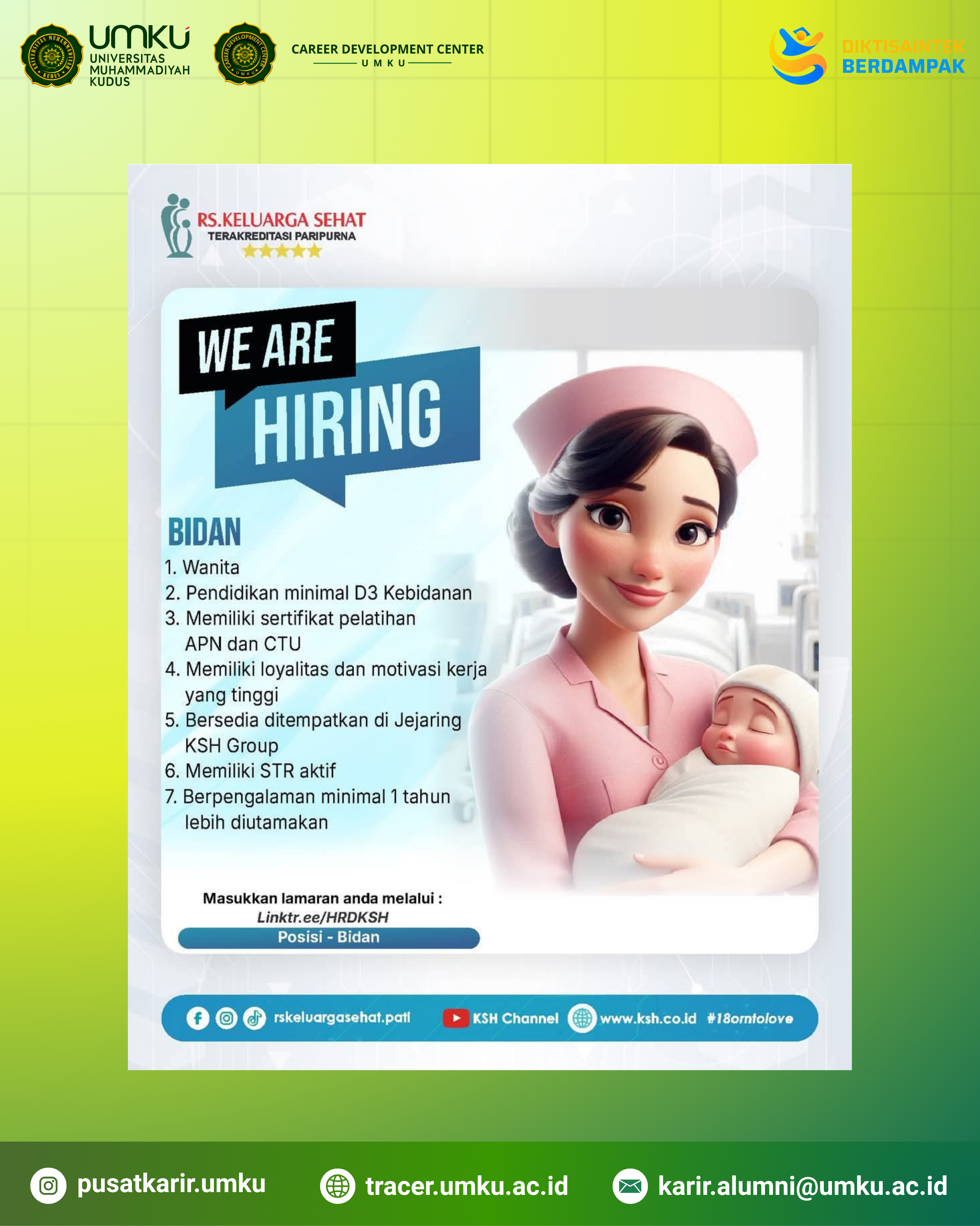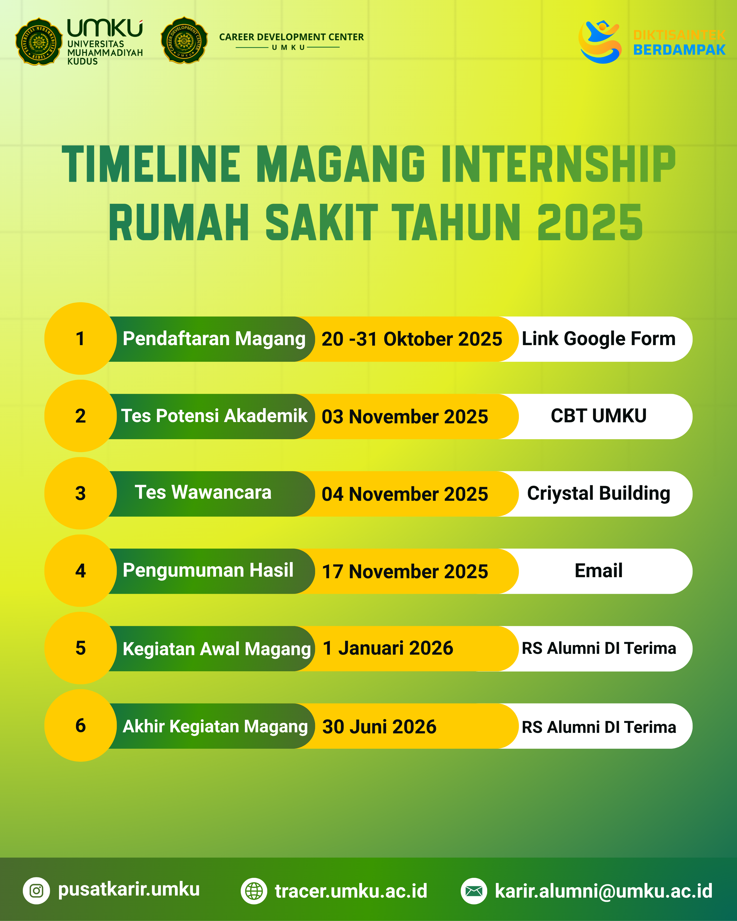 Tracer Study dapat disebut juga dengan surve alumni dapat diartikan juga studi tentang orang yang telah lulus dari perguruan tinggi. Sejalan dengan tujuan pemeringkatan meminta untuk terlibat dalam tracer study yang bisa dilakukan melalui link online. partisipasi Alumni didalam tracer study sangat bermanfaat untuk kami Universitas Muhammadiyah Kudus dan untuk almamater tercinta serta untuk upgrade kurikulum prodi, proses belajar sesuai dengan dunia kerja lebih dari itu, data keberadaan alumni akan menjadi rekam jejak kami, suatu saat kami bisa saling bersinergi untuk memuwujudkan universitas kita semakin lebih maju dan suskes, saya berharap kontribusi anda dibalas oleh Allah SWT, dan semoga lebih sukses dan tentu UMKU menuju universitas yg unggul berkelas university, sesuai dengan visi misi kami terimakasih.